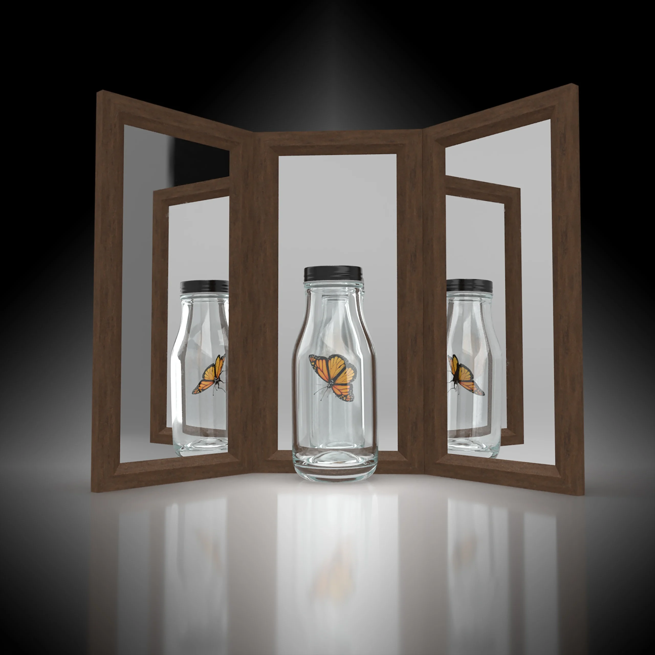 - Twee spiegels tegenover elkaar plaatsen met een talisman object ertussen om oneindige bescherming te versterken.